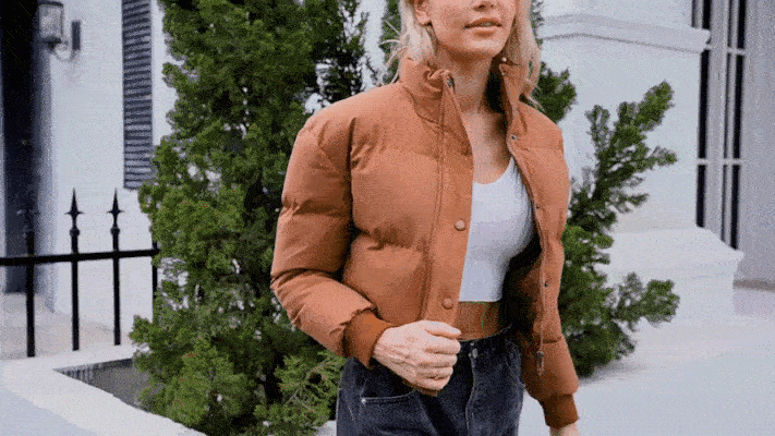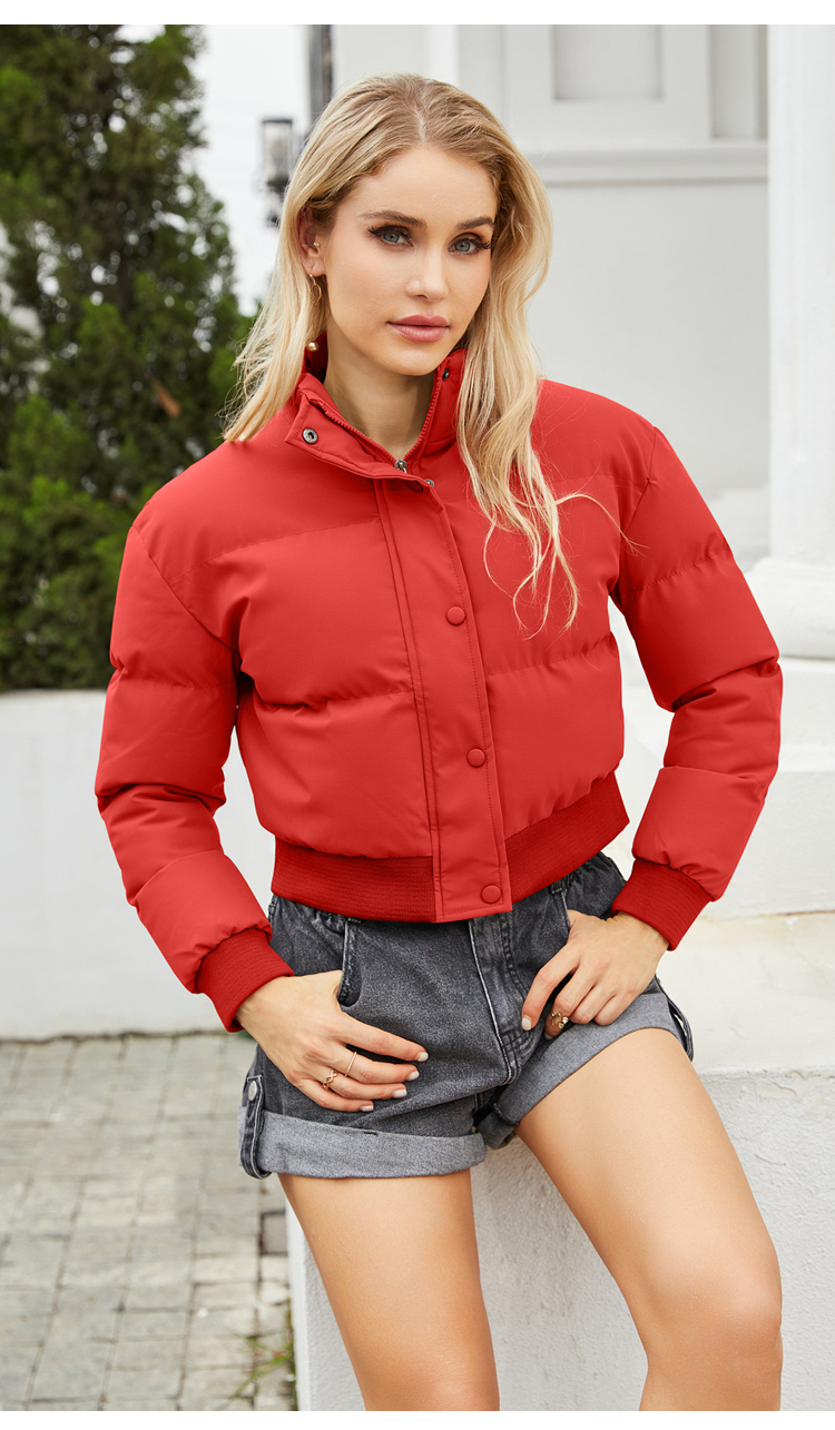 Palton scurt de puf alb de gâscă cu guler înalt